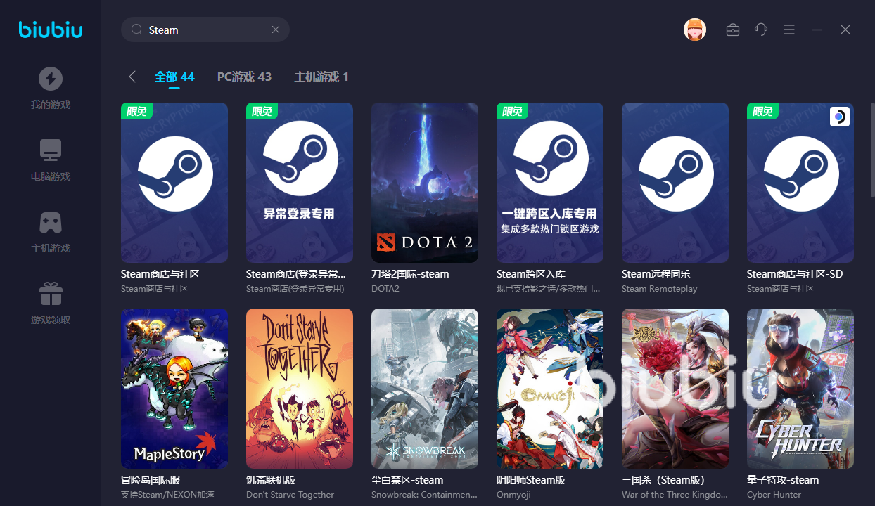 据小编的了解身边很多朋友就在用biubiu去加速Steam,因为Steam在biubiu目前是可享受免费加速的,除了Steam之外还有国服游戏跟主机游戏也在活动范畴之内,就算是抛开一切不谈,光是看这三重的福利赠送就会很让人心动,平时要是关注游戏比较多,或是对Steam新游很感兴趣的话,入驻biubiu一定不会让你后悔。