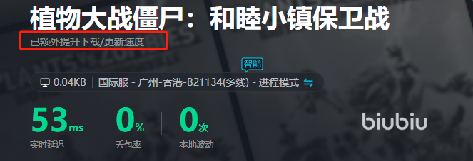 加速在生效之后同步的是游戏内、下载器、登录平台,所以就等同一次性解决了诸多网络限制上的问题,在最难解决的steam平台中下载游戏,也不会让你觉得有网络的卡顿感,而且植物大战僵尸其实也占不了几个G的内存,所以通过biubiu提速后下载只需要十几分钟左右,正赶上biubiu新用户注册能领取24小时免费加速,新老用户可靠兑换码【biubiu不卡顿】领取72小时加速,可以通过这段时间去下载想玩的游戏。