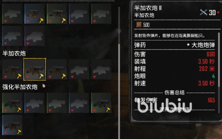 这个类型就是纯近战了,射程很短,基本都在300米左右,伤害还不错,达到了660。另外还有爆炸效果,弹片可以撕裂敌方船只,装在侧翼在跟敌船并行的时候,发射拦腰打烂对手的船。