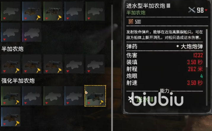 在前一个的基础上增加了进水伤害,不仅是撕裂船只,还可以在命中的敌船身上开洞,海水灌进去船身吃水就会下沉,整个航向就把握不准了,玩家可以抓住机会乘胜追击。