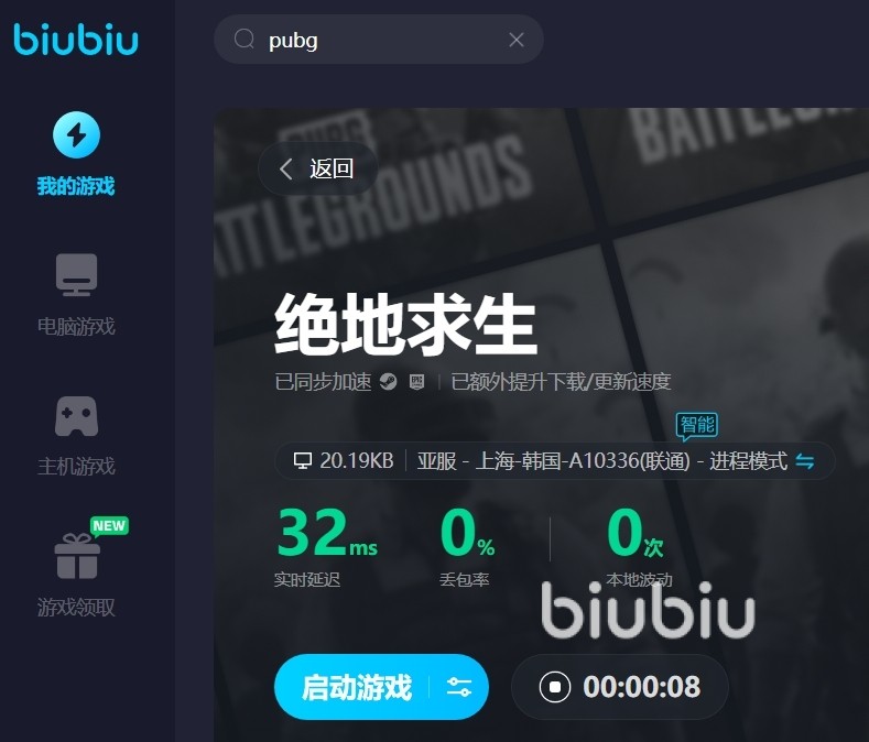 游戏中的核心玩法就是玩家要利用沿途找到的各类生存道具尽可能的存活到游戏的最后一秒,在道具上可能是平平无奇的平底锅也可能是步枪、狙击枪等。有了保命道具之后就是要想办法尽可能的“苟”着,在端游中玩游戏的时候建议开启耳机或者是音响,在游戏中还是有可能听到敌方轻微的脚步声,这也是为什么会建议玩家选择加速的原因之一,在开启了加速器之后能够降低玩家网络的延迟率,这样听到的脚步声是实时的脚步声,也就能更好的保护自己和击杀敌方。如果玩家没有体验过BIUBIU,那么BIUBIU针对新人的福利就不要错过了。