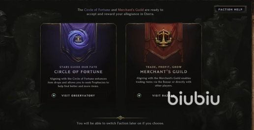 玩家们既可以将装备上架拍卖行进行交易,也可以通过阵营来进行交易。在游戏内可以选择两个不同的阵营,每个阵营都有独特的阶级和声望系统,通过特定的任务以获得更多的声望来提高所在阵营的阶级,这样就能够享受更多的交易选项和奖励了。