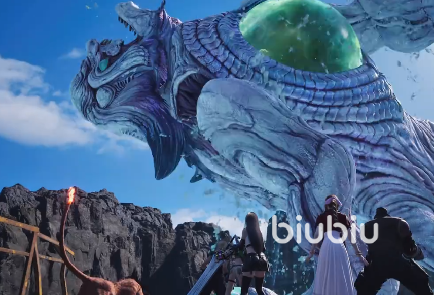 剧情结束后我们继续爬山,这里能与巴雷特一行人回合,接着大家来到魔晄炉,又看到了黑斗篷的身影。在听尤菲说了一通五台发生的事情后,这里的水中钻出了一个巨大的生物。他的腹部有着一枚巨大的魔晶石,根据赤红的说法,这是星球守护者,在星球面临危机时就会出现。