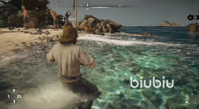 玩家只要在航行到陆地旁边停船就能直接去岸上,因为本作是开放世界设计,所以没什么地形限制,直接控制角色往岸上走就行了。你甚至可以一路游泳去陆地,不过这没有什么必要,也不能为你解锁什么成就。