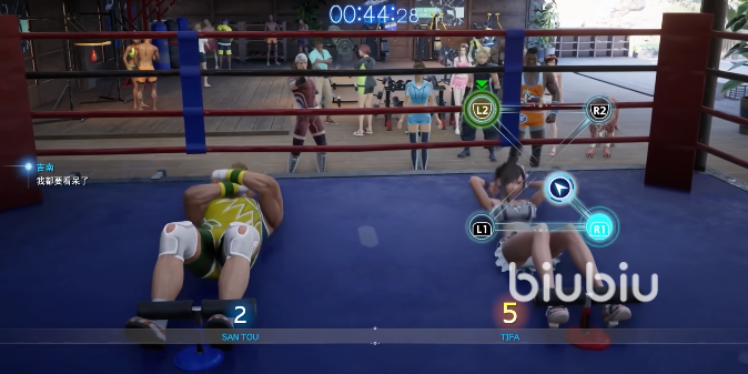 在剧情中首先是蒂法接受了挑战,玩家不能使用其它人来接受挑战,不过其实操作起来还是一样的,只需要根据提示来按下手柄上的按键就行,在规定时间内做完就算获胜。玩家在结束之后还可以再来这个地方重复体验健身小游戏。