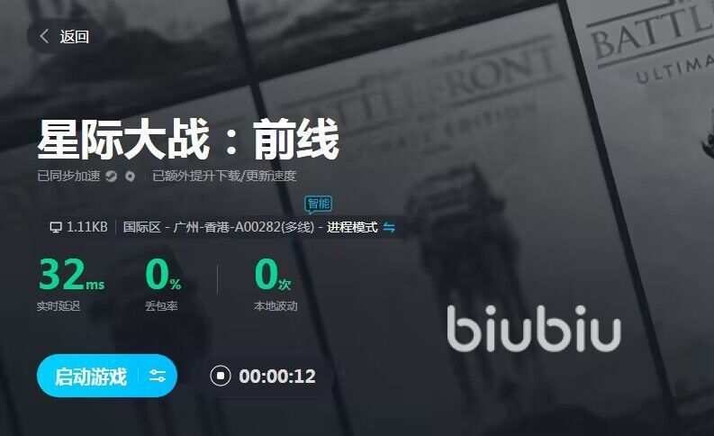 为了让小白用户也能轻松上手,biubiu的操作也是极其的简单,只需要输入自己想玩游戏找到对应的版本,然后点击立即加速即可享受丝滑的网络体验。biubiu目前已经支持对《星球大战》系列游戏提供加速,使用兑换口令【biubiu不掉线】可享受到3天的免费加速时长,新老用户都可以使用。新用户注册可直接再得24小时加速时长,与兑换活动同时使用最多会有96小时的加速时间。