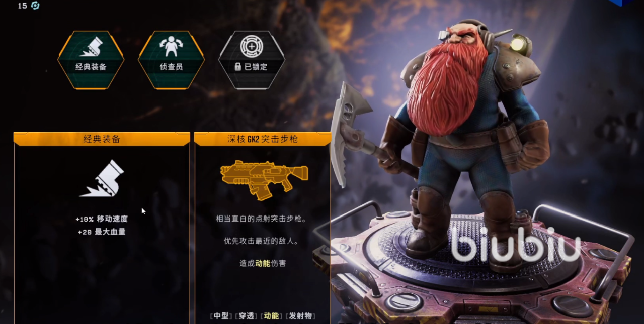 在开始一局游戏前我们选择默认的侦查,选择第二个子职业侦查员,初始武器时朱可夫NUK17冲锋枪。侦查员有一个被攻击时有25%闪避几率buff。进入游戏后我们需要采集基础资源黄金和硝石,这些可以给武器进行升级。就拿朱可夫举例,优先是射速,然后是伤害,最后是换弹速度。后面的三把武器都需要玩家提升等级才能获取。