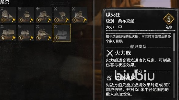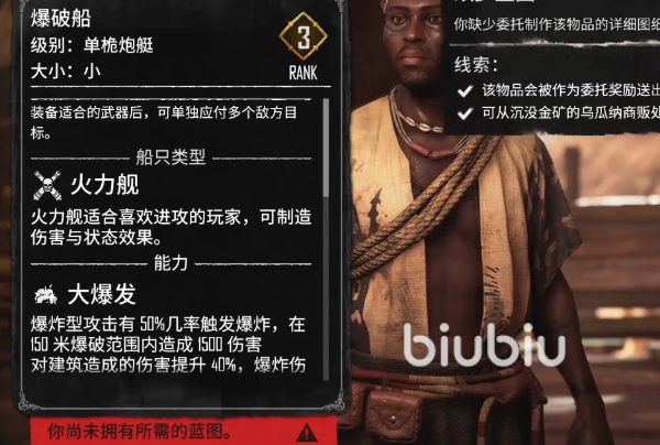 而游戏中的攻击总共分为四个类型,分别是爆炸型、火焰型、穿透型和进水型。其中爆炸型就是一个范围性伤害,当他的伤害造成时会在区域内出现一个红圈。而巴得瓦康船它拥有一个引爆的技能,当船只释放爆炸型攻击时有百分之七十的几率触发爆炸,并且在一百二十五米的爆破范围内能造成额外一千的伤害值。如果之前目标船只已经处于燃烧状态,那么触发爆炸的几率将提升百分之百。这种船对建筑的伤害也会提升一半,同时武器伤害半径提升百分之十二。由此可以看出,这个类型的船只是后期优先要获得图纸的一种,因为它很可能作为游戏后期的主要使用类型。