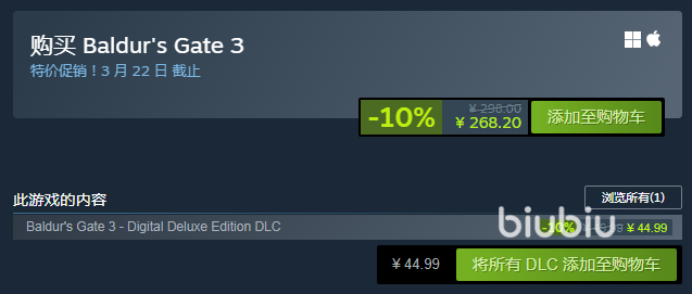 23年年度最佳游戏,剧情线丰富,骰子系统的加入,让掷点成为战斗的重要元素,充满随机性。现在史低价格268元,值得购买。