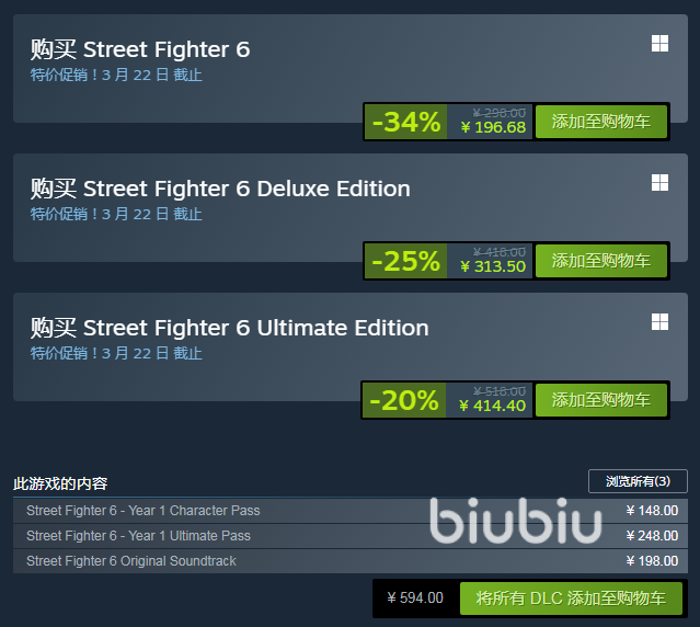 格斗游戏的鼻祖之作了,街机时代就非常流行了,这次的角色更多,技能也多样,包括特效做的也华丽,打起来手感也好,是不容错过的一款好游戏。大家只要花费196.68元就可以购入这款新作,可是史低价格哦。