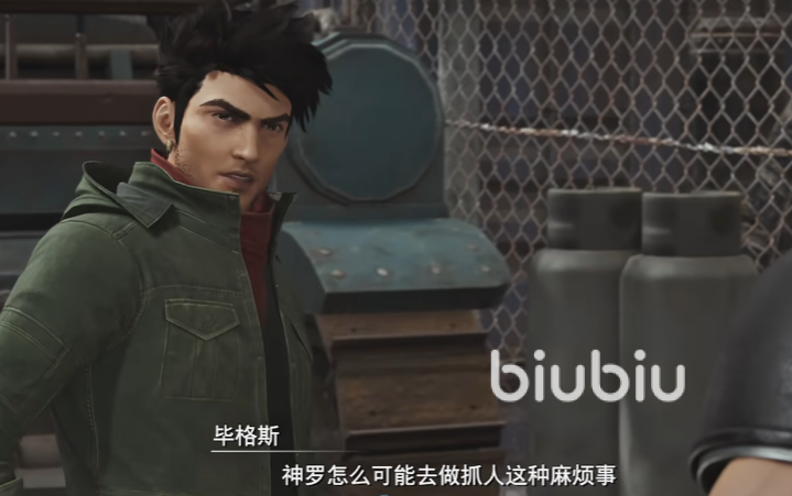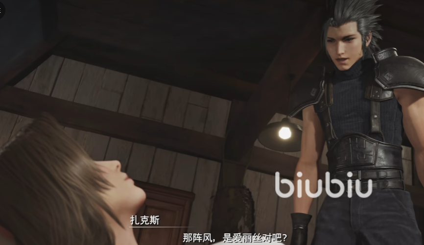 接着画面一转来到毕格斯这里,他在跟扎克斯讨论他们战斗时候遇到的事情,能造成致命伤害的攻击莫名其妙的被躲避掉了,就像子弹就要打到扎克斯的额头了,却被风吹得偏移了路径,其实这是本作平行世界设定的伏笔。接着玩家操纵扎克斯一路跟着毕格斯,发现神罗的招募信息。