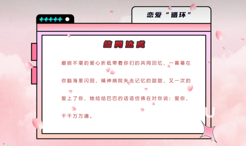 这里要是选择了离开,下次再来甜甜虽然治好了一点,没有生命之忧,但是已经失忆了,并且住进了精神病院。可还是记得叠爱心,这是对男主爱的证明。