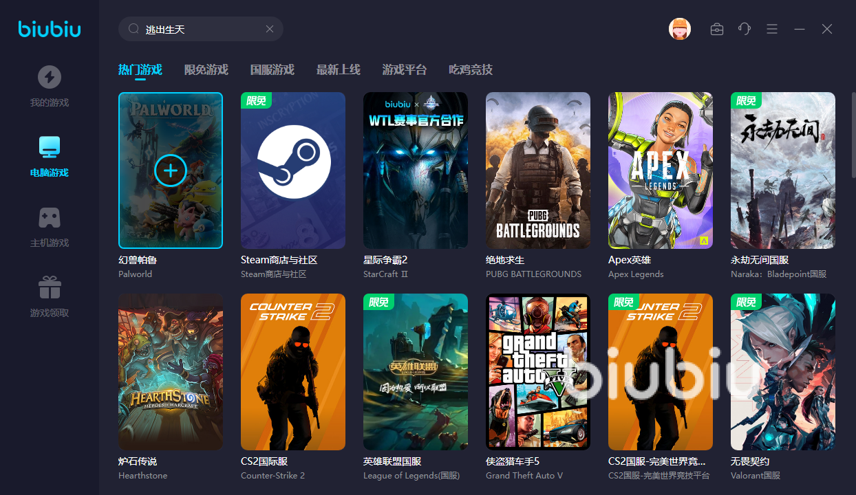 但是逃出生天的玩法还是稍微有些“折磨人”,心态差的同学可能玩一会就想要换游戏,而biubiu目前收录的网络游戏和Steam著名单机游戏也是数不胜数,详情也可直接到首页的游戏库里面看一看,里面把主机、pc、单机等等分类的很清晰。