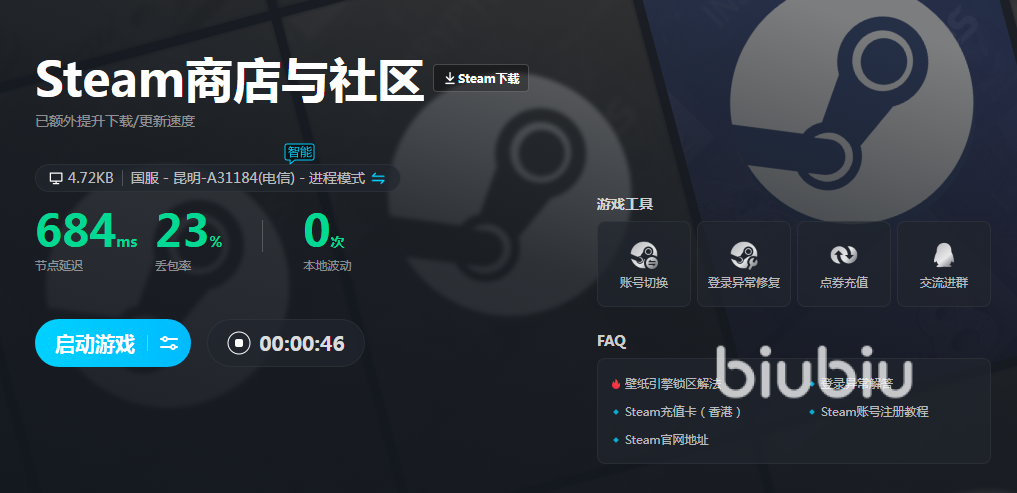 有关steam卡在正在开始下载如何解决就分享这么多了,说得再多都不如大家亲自加速一次有说服力,只要点击上面的按钮就可以下载最新版本的biubiu了,安装完毕就能立即使用,它还有非常多的功能等待大家亲自探索。