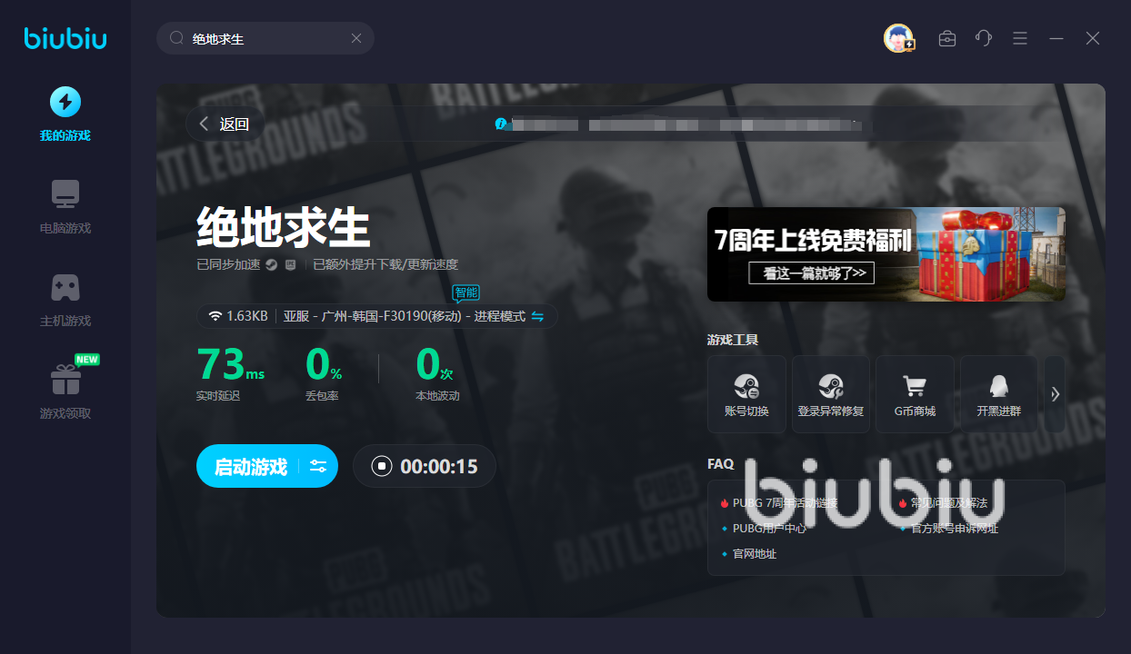 绝地求生是款国际游戏,暂且没出现国服。若是打算进入未知的战场,宝子们还得打开biubiu,方可获得更好的网速,才能有机会与世界各地的人切磋交流。然后新用户还可享受24小时的免费加速。除此之外,新旧用户都能输入【biubiu不卡顿】,尽情享受三天免费加速。这样便可让你初步了解这款游戏,并开启一场轰轰烈烈的对战,还能利用好各种载具以及枪械,感受这片战争大陆的魅力,还能享受屠戮的快感!