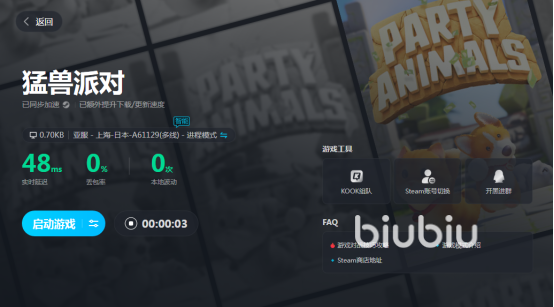 猛兽派对适合不同年龄段玩家,家庭聚会,朋友聚会都可来一场,其中有多种不同的模式,包括生存赛,得分赛以及大乱斗,排位赛等等,每种模式都有不同的玩法,无论体验哪种模式,都需拥有稳定网络,尤其是大乱斗,多人在一张地图上共同体验一场游戏,网络不稳定,卡顿掉帧,以至于闪退都会影响玩家心情,甚至会直接掉分,还没有将个人能力完美发挥,就被赛事淘汰。在无比欢乐的时刻,怎允许网络影响自己的作战乐趣呢?因此加速器是必不可少的,小编为大家推出的biubiu很值得下载,点击上方下载按钮进入即可获取。
