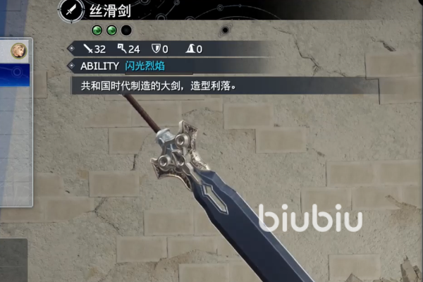 首先在游戏中我们能够获得的第一把武器便是主角克劳德的丝滑剑,这把剑的获取方法有两种,一种则是需要我们前往湿地前码头旧址。当到达这里时在桥旁边的屋子背面便是一个紫色的箱子,我们打开箱子就能获得这把武器。它是一把共和国时代制造的大剑,造型十分干脆利落,我们在装备这把剑的时候能附加火与雷的属性并发动斩击。另一种获取方法则是要点开卡姆市区的武器店,在所有商品里面找库存为1的,基本上第一个便是丝滑剑,我们可以花费三千GIL进行购买。