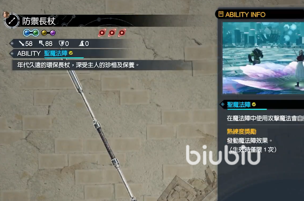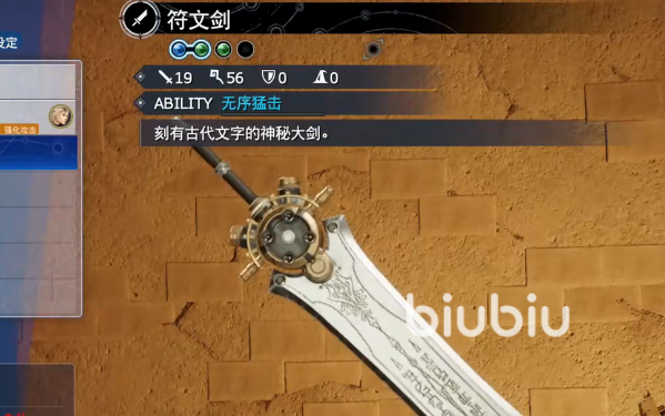 与主角克劳德十分匹配的符方剑,需要我们先观看珠诺地区的阅兵演示,在阅兵结束之后,向前走可以在长椅旁边发现一个紫色的宝箱,打开宝箱便可取得符文剑。这把大剑有一个技能无序猛击,我们只要发动此招打中敌人,那么在命中的同时就会额外增加ATB,并且一直能爆出大范围的电击伤害,同时自动将角色的战斗姿势变成勇猛。因此当我们拥有这个技能时,角色的清怪效果变得超级高。即使后期越级打怪,只要等级不超5-6等以上,以及某特定BOSS太过刁钻都可以轻松碾压过去哦。
