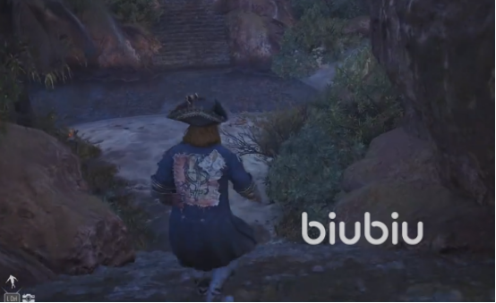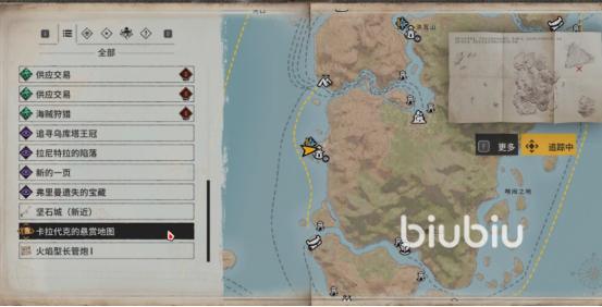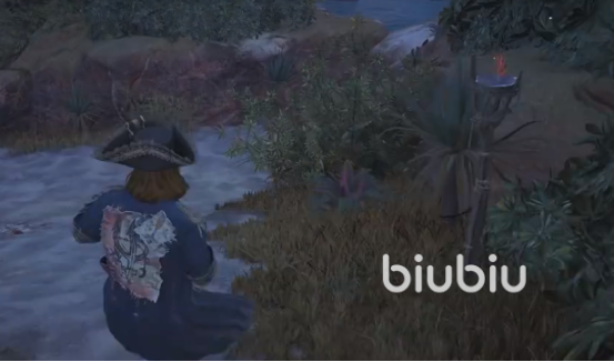 我们点击F键进行追踪在解决敌人后,我们动身前去皇家墓园据点领取奖励。从船上下来先往右侧的石梯上走,然后在分岔路口往左走,一直走到下楼梯。这里需要注意我们来到小水池时,往右走会有一条小路。沿着小路一直爬,直到看到一个火把,宝藏就藏着这附近,稍微找一下就能找到。我们会获得白兰地,私掠许可证和卡卡拉代克的悬赏。
