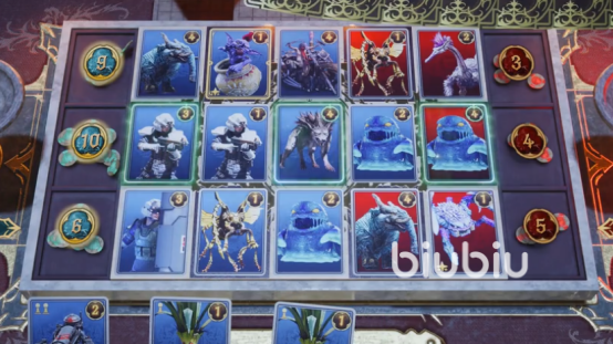 这时我们的阵地就会远超对手,随后就可以将手中的软糊怪放到警备兵前,从而提升后一排的格子等级。这时就需要想办法提升左边的分数,可以将响板蟹放在第三行第三个格子,再将曼德拉草放在第一行第三个格子,用自己手里的卡牌将占领的阵地填满,基本就能赢下比赛了。