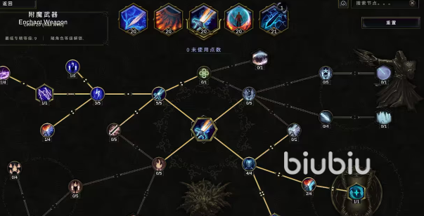 附魔武器也是我们着重需要学习的技能,它的效果就如名字一般可以为武器增加各种属性的伤害,下面看看如何进行加点: