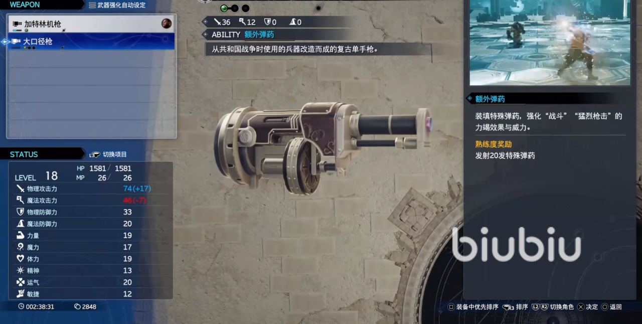 要想获得它必须先获得陆行鸟,接着再往湖心岛走,会触发萨瓦罗斯背影处,然后走过去就会发现宝箱,打开即可。因为是由共和国战争时期的复古单手枪改造而来,所以额外弹药的能力使得它可以装填特殊弹药,强化战斗中战斗和猛烈枪击的力竭效果和威力。提高熟练度最高可发射20发特殊弹药。