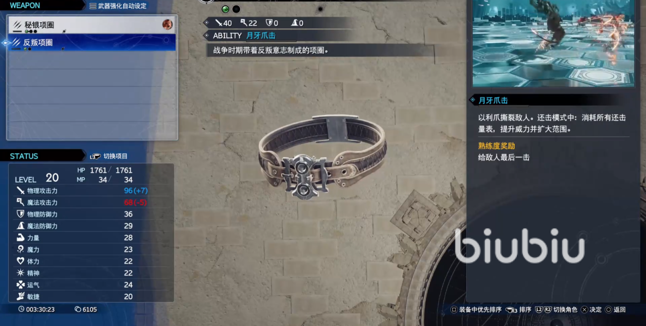 还是在第三章旧国营隧道最深处,等触发完剧情我们往墙体边上走,会发现一个宝箱,里面就是反叛项圈。同样产生于战争时期的它能力虽然比较的简单,但月牙爪击使得我们能利用爪牙将敌人直接撕扯。在还击模式中通过消耗所有还击量表为代价,能够大幅度提升威力并扩大攻击范围。