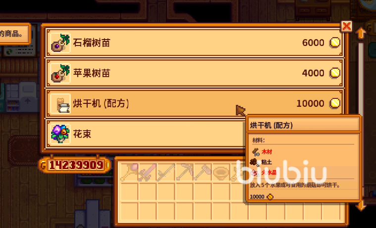另外随着1.6版本的更新,很多新物品也随之加入,玩家想要解锁的话也是需要配方的。更新后大家前往皮埃尔的商店可以购买到烘干机的配方,前往齐先生的商店可以买到蓝色草籽、红色烟花、紫色烟花、绿色烟花的配方。其他更多的配方还在陆续解锁当中,大家也可以自己探索一下!以上就是星露谷物语新配方解锁途径一览,小伙伴们赶紧上号解锁新的配方吧。