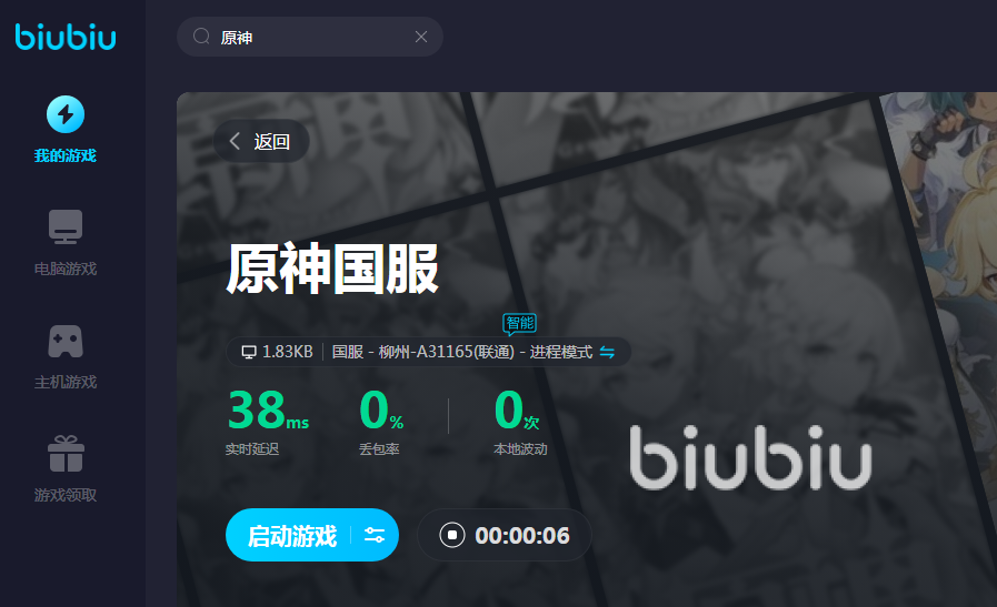 biubiu降低网速延迟是很明显的,不管玩什么游戏,大家在游戏库了找到以后直接一键启动,等待智能节电自动连接,加速完成就能获得流畅的网速了。优化后的网速不仅仅是速度快,波动幅度还很低,不会丢包让大家掉线,也不会忽然速度一下快一下慢让大家在原神里移动宛如“过山车”。