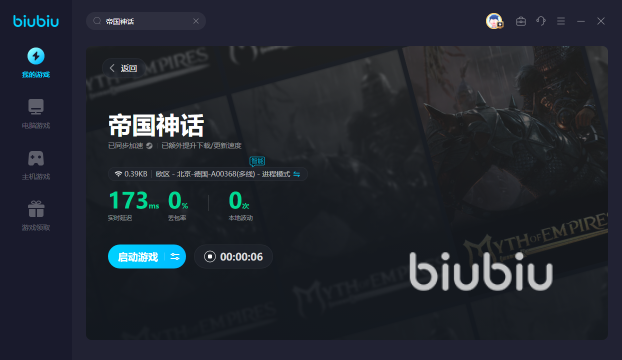 想要进入帝国神话的话,还需要使用biubiu加速过后才能办到。因为该游戏暂且没有国服出现,有了它之后即可随心选择对应的帝国大陆并开启自己的游戏人生!然后新用户还可获得24H的免费加速,这样便可初步体验这款游戏。另外所有用户都能以【biubiu不卡顿】,进而继续兑换三天免费加速,令你的宏图霸略可以继续实现!刚开始游戏时自身实力微弱,玩起来困难重重。但好在biubiu加速后网络更顺畅,这样即可能更快地刷怪升级,让你各方面属性大幅提升,这样才有立足的根本。