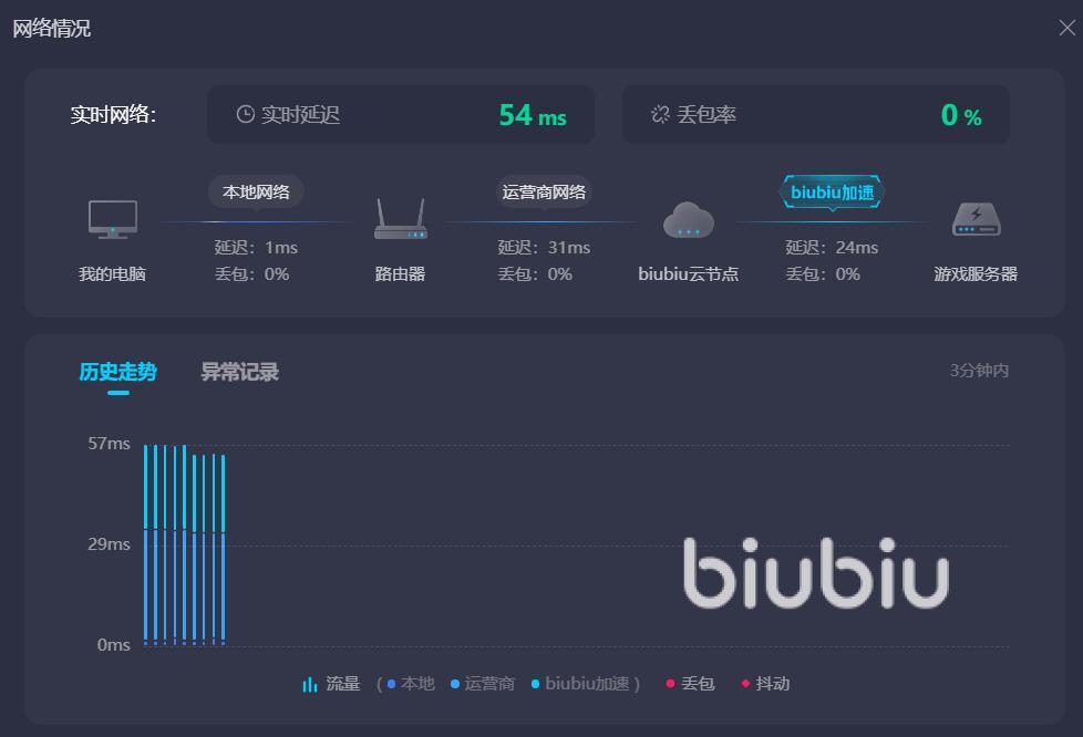 为了确保加速期间网络的稳定,平台会实时监测网络的情况,期间要是出现了波动或异常,会及时显示出来,如果对游戏运行影响过大,那么可以换一个节点去继续加速。
