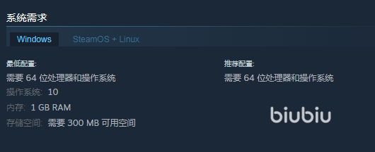 那么此游戏所需的电脑配置要求高吗?根据下图小编是不是可以理解成,只要你的电脑是64位的系统,运行时内存达到1GB,硬盘空间有300MB以上就可以了?那不就等于说,现在的电脑都可以游玩吗?所以大家就不用担心自己的电脑配置不够了,放心大胆尝试吧!