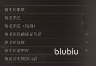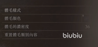 调整完头部的数据之后,再来到体毛部分的选项。先从发型开始调整:
