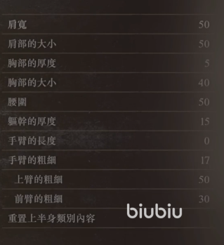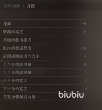 大家在进入角色编辑界面,首先选择男性的人类,然后进入详细的编辑面,这里身体参数如下。