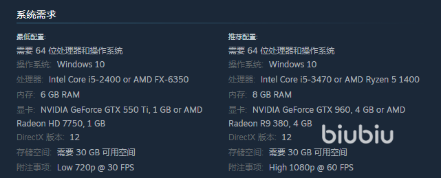 那么这个游戏对于电脑的要求高吗?从下图我们可以得知,哪怕是推荐配置也才是3代的i5加上960显卡的组合,这在电脑圈里也才是低配,所以就算你是几年前的主流配饰。也是支持游戏的运行的,所以就不必担心玩不了该游戏了。