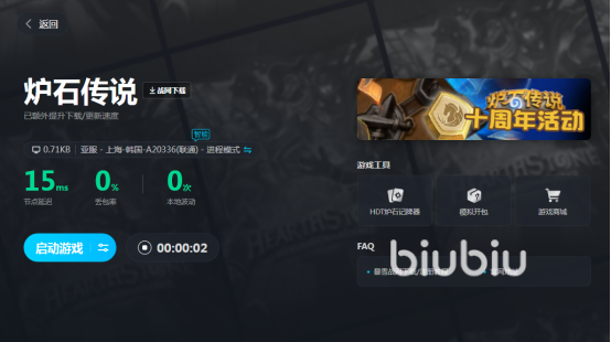 2024年03月22日 16:48 来源:缠绕冰鹤仙人炉石传说是充满魅力的游戏,无论新玩家还是老玩家都能从中获得乐趣,有各种不同的卡牌,有丰富的剧情等待前来探索,拥有完善的游戏规则,轻松掌握各种角色并获得胜利。那么炉石传说卡顿怎么解决?无论体验哪种类型,有卡顿问题会直接影响游戏体验,甚至也不能感受高品质内容,无法在闲暇之余感受乐趣,因此加速器是必不可少的,今天为大家推荐的是热门加速工具biubiu。