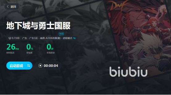 2024年03月26日 14:55 来源:虫洞以角金鱼每当说到非常热门的格斗游戏,人们第一时间想到的就是地下城勇士不得不承认这款格斗游戏非常受欢迎,自从2008年推出之后,就瞬间火爆全球。那么地下城与勇士卡顿跳屏怎么解决?随着时间的推移,地下城勇士也在不断优化各方面多次改版并进行升级,增加副本的同时也拥有全新的剧情,有多种挑战任务,等待玩家探索,增加游戏体验过程中的趣味性。只是有严重卡顿跳屏的情况,让玩家特别苦恼,甚至严重影响心情,我们可通过加速器来解决,小编比较推荐biubiu。