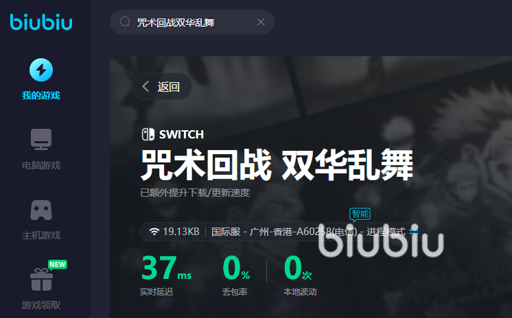 以后再玩咒术回战双华乱舞,遇到闪退,延迟跟掉帧问题,大家应该知道了处理方式吧,当然是用上厉害的biubiu啦,在它的助力下,获得最快乐的游戏感受。