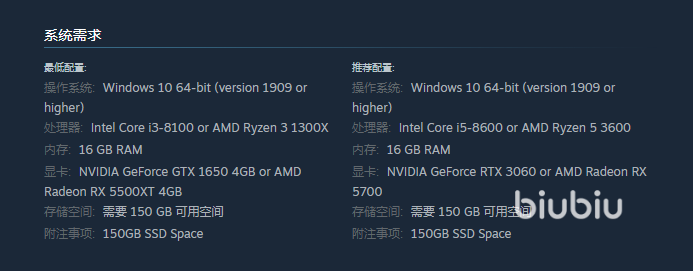 关于此游戏所需配置,小编结合了最近发行的3A游戏西之绝境大胆的做出了以下的预测,16GB的运行内容加上8代的CPU,以最低特效运行就配1650的显卡, 中高特效就上30系显卡,以现在主流的电脑配置是完全能以中特效游玩的,再不济也可以使用低特效玩,所以大家不必担心了。