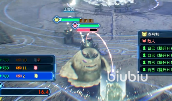 在游戏的一开始角色会分成三角形将“国王黏糊怪”围在中间,我们也是需要将其打败的。在战斗开始的时候大家需要不停的召唤机器人去进攻,但是使用以后会消耗自身的能量,大家依次在三个角色切换并下达召唤进攻的指令,这样就可以利用好充能时的空白期了。
