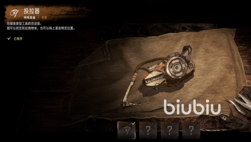 在调查完两块旅行包的物品之后,玩家可以获得机器电缆一份和机器废料一个。随后我们来到工作台,点开后就能看到投拉器,点击制作即可完成。