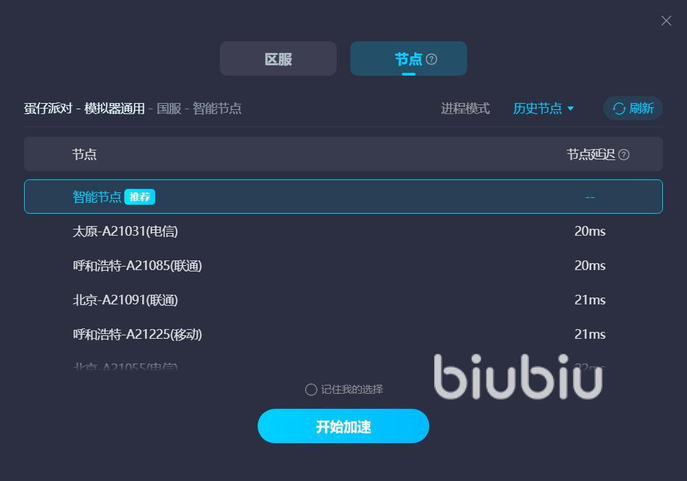 至于该怎么去选节点,biubiu加速器内提供了两个方案,一种是用户自己动手操作,从平台提供的多个节点中,自行选一个合适的去用;还有一种是由系统帮你推荐,无需你进行额外操作,更省事儿一些。