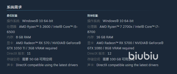 那么它对于电脑的要求高吗?根据下图我们可以得出该游戏是不吃CPU的,所以重点就放在显卡上,低配1050TI中高配1080在电脑圈应该属于中低配置左右,现在的电脑大多数都可以满足游玩的需求,其次想提升游戏体验的话那就将运行内存改为16GB、硬盘空间留足100G,这样方便游戏的存储和运行。