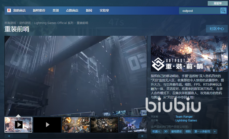 不过好在,游戏方也将它的中文名字给注册好了,现在只要输入游戏名就一定能搜到了,同样如果我们输入英文名outpost也能搜到,只要两个都试一试肯定没有问题的,因为在steam上面游戏的名字就是这两个,没有其他的。
