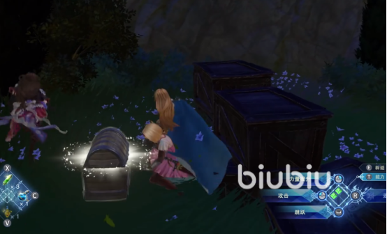 之后我们来到村庄对面,在篝火旁边会发现一个宝箱,从上面跳下来来到瀑布旁,在瀑布后面会有一个黄金宝箱。之后来到瀑布对面,再一次完成藏在幻影中的财宝后,会获得一个黄金宝箱,一个普通宝箱和一个史莱姆金币。最后我们来到逃命村民附近,会找到三个宝箱和两个小钳蟹。