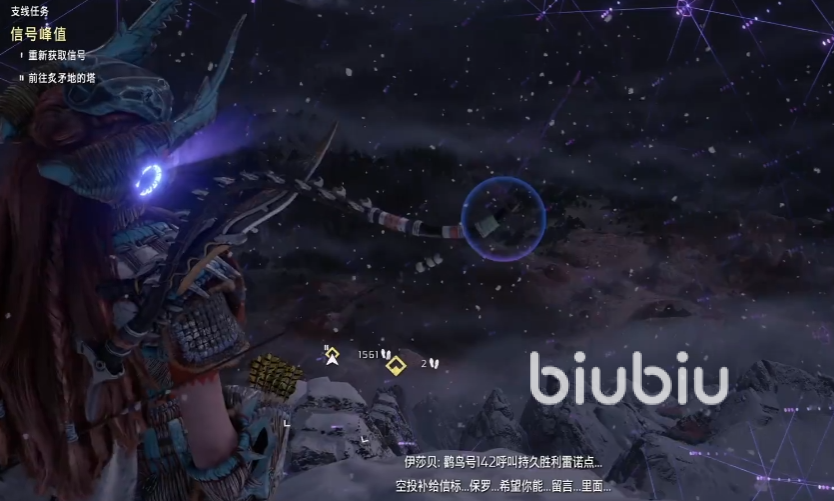 经过战斗爬到山的东面并找到最好位置的山峰,这里就可以重新搜集到信号了,主角可以比较清楚的听到里面的内容,下面就要去高塔了。