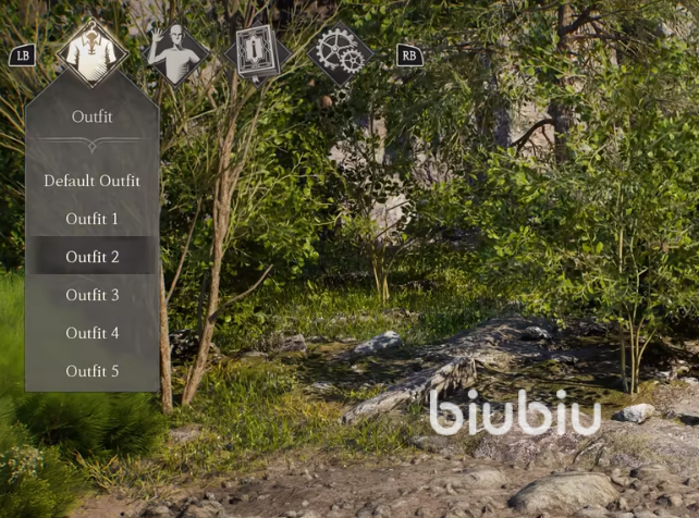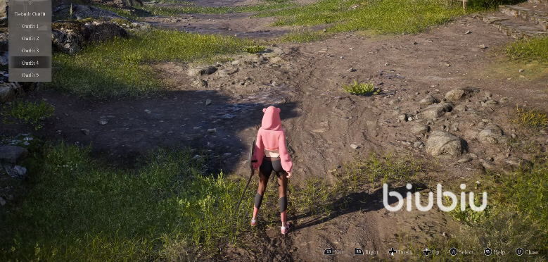本作由于目前是限量试玩状态,所以玩家在游戏里会直接获得所有外观,只需要将你的光标移动到左上方,你可以看到一个衣服的标志,上面写着Outfit,通过点击下拉菜单就可以改变你的时装。