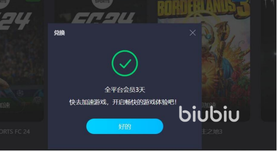 现在的话biubiu官方为了让更多的玩家都体验一下,免费赠送加速时长这样的福利。新用户可通过输入身份证以及手机号,验证码完成注册,然后登录即可领取到官方赠送的24小时免费加速时长。如果想要体验更多的加速时长,可通过兑换码的这种福利,兑换码福利是不区分新老用户的方法,也非常简单,只要玩家进入加速器应用以后输入【biubiu不卡顿】即可获取免费加速三天这样的福利。加速以后,玩游戏的过程网络流畅,既不会出现掉帧卡顿的问题,也不会出现掉线或者是跳屏等问题。