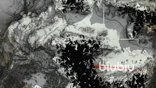 首先该怪物的标志并不会在地图上标出来,但是大家可以去如下的雪山图位置就可以看到它了,不过由于它这里不是固刷点,有些时候要等一会或者下次再来就可以找到它了。如果大家还是找不到的话,那就去埃洛伊的断脊隧道右侧出口附近的庇护所上方,这里能看到它在空中盘旋。