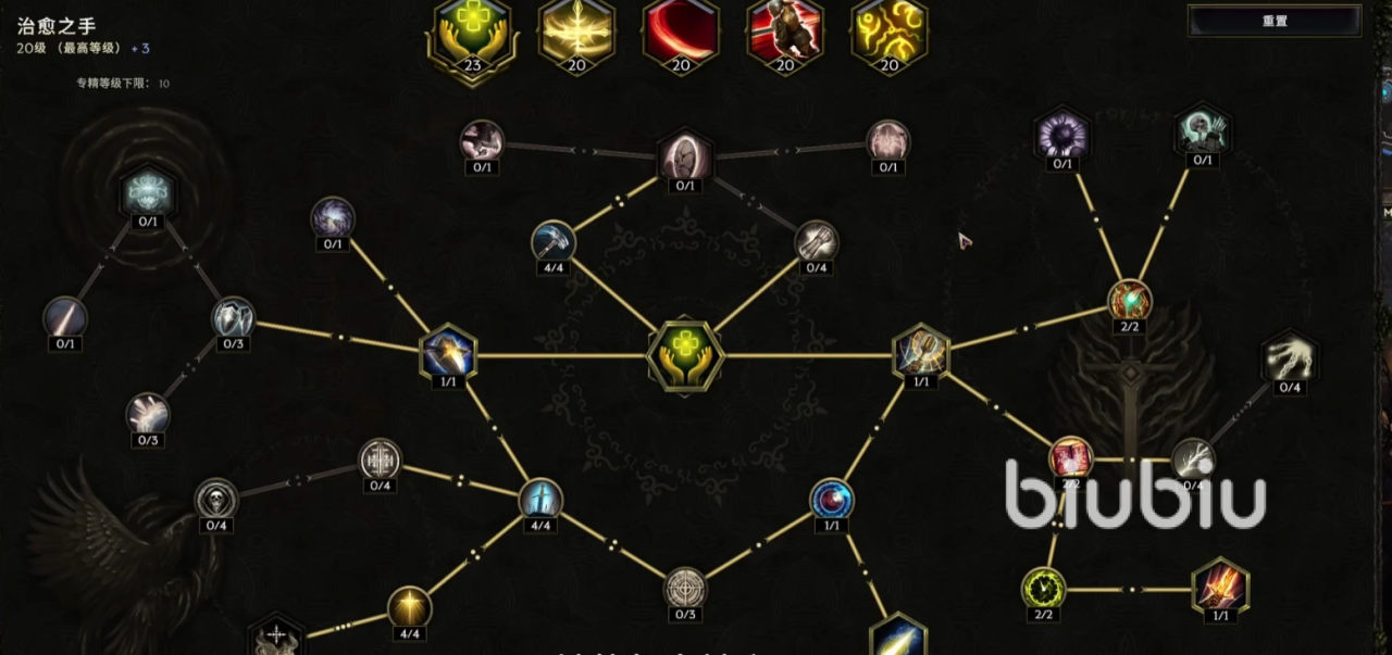 技能和专精方面“治愈之手”选择用近战技能撕裂来进行释放。专精点满传教士之锤,使近战100%几率释放治愈之手,但是初始治疗量会降低65%,我们要尽量堆高我们的治疗效率。堕落者的祈祷和快速愈合都要点满,然后点出灼热之光和炽天使之刃,让治愈之手具有火焰的伤害。